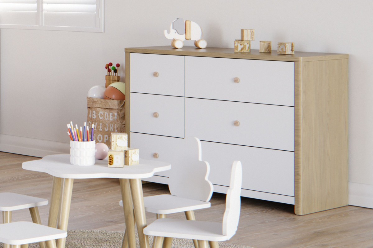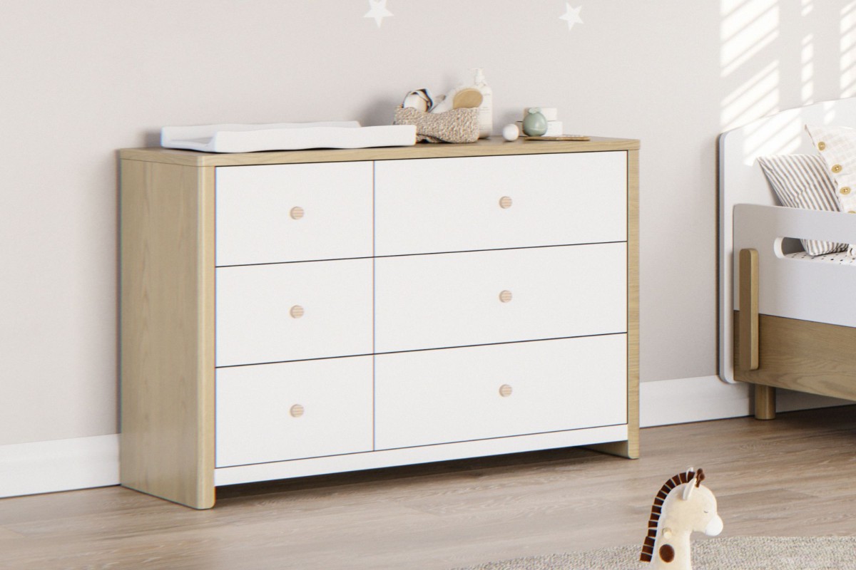 Featuring clean lines and soft curved edges, the Riley 6 Drawer Chest offers practical finishing touches and practical storage to any bedroom.