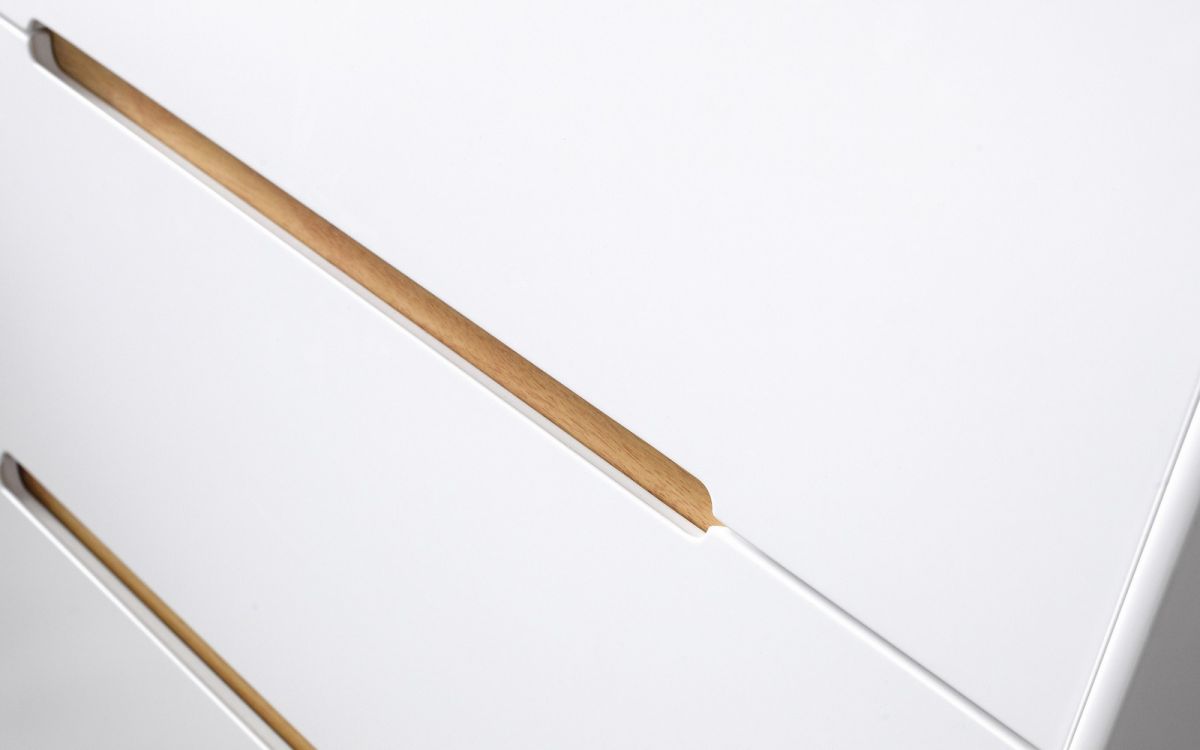 A stylish, retro-inspired chest with 5 drawers in an immaculate matt white lacquered finish, with complementary tapered oak finish legs and recessed handles to provide easy opening. The sleek Scandinavian feel fits beautifully with any décor.