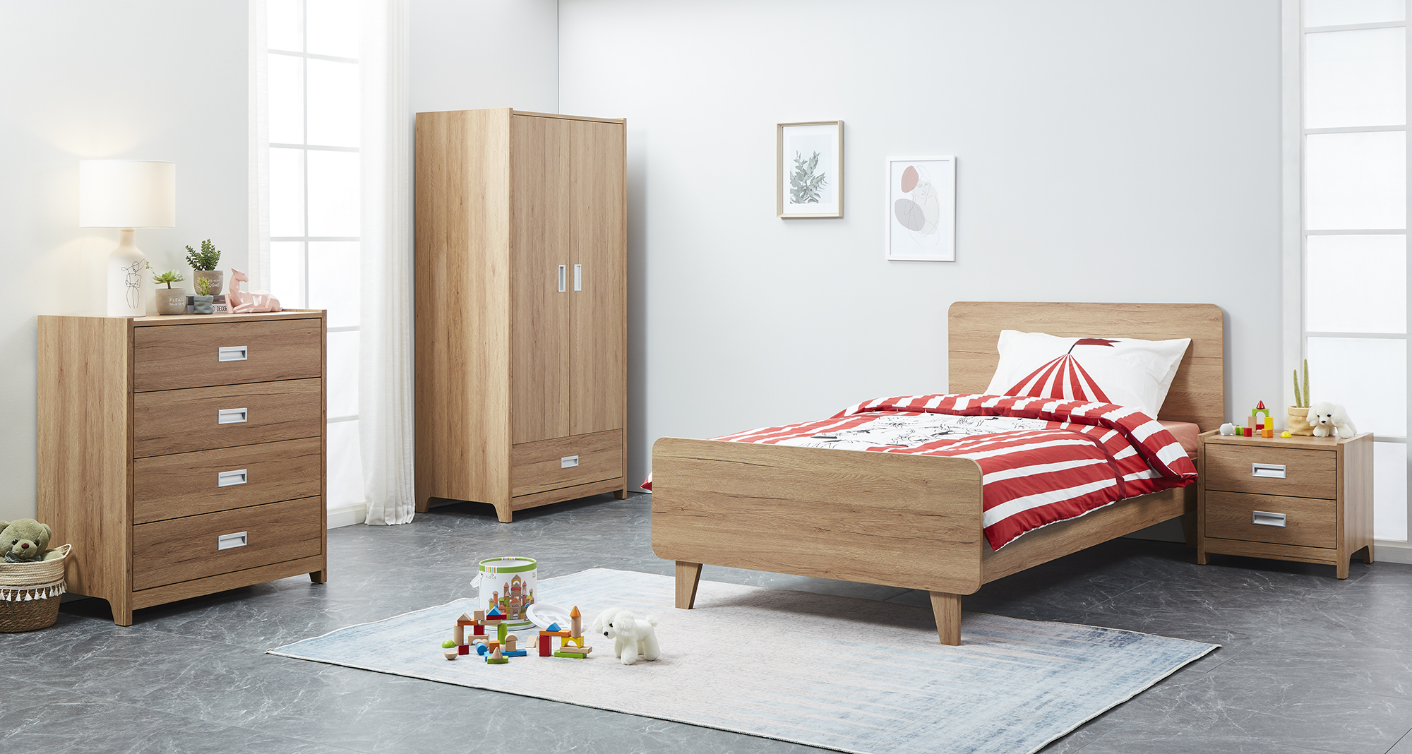 Blue? White? Full oak? The choice is yours. Featuring curved lines and pops of colour, the Scandi inspired Ashley kids suite screams fun and will turn any child's bedroom into the favourite room in the house!