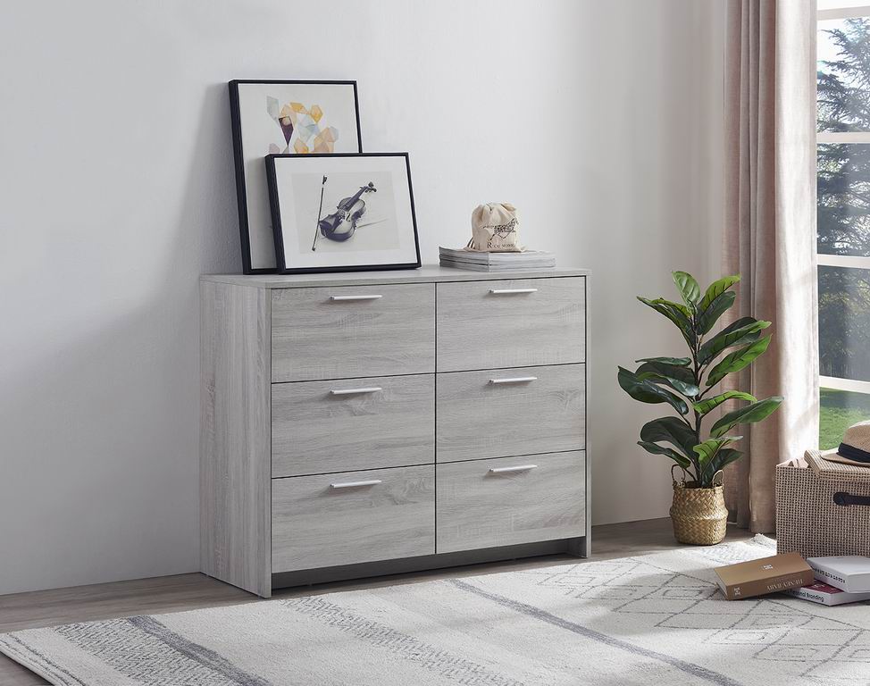 Features: Light grey wood effect finish Modern and simple design Sturdy and robust Part of a matching furniture collection Fits well with any decor