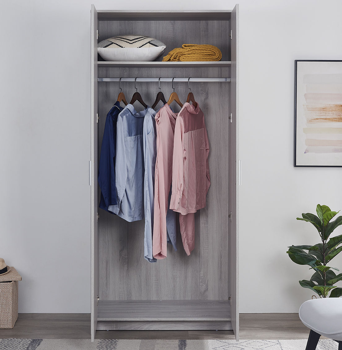 Features: Light grey wood effect finish Modern and simple design Large storage space Part of a matching furniture collection Fits well with any decor