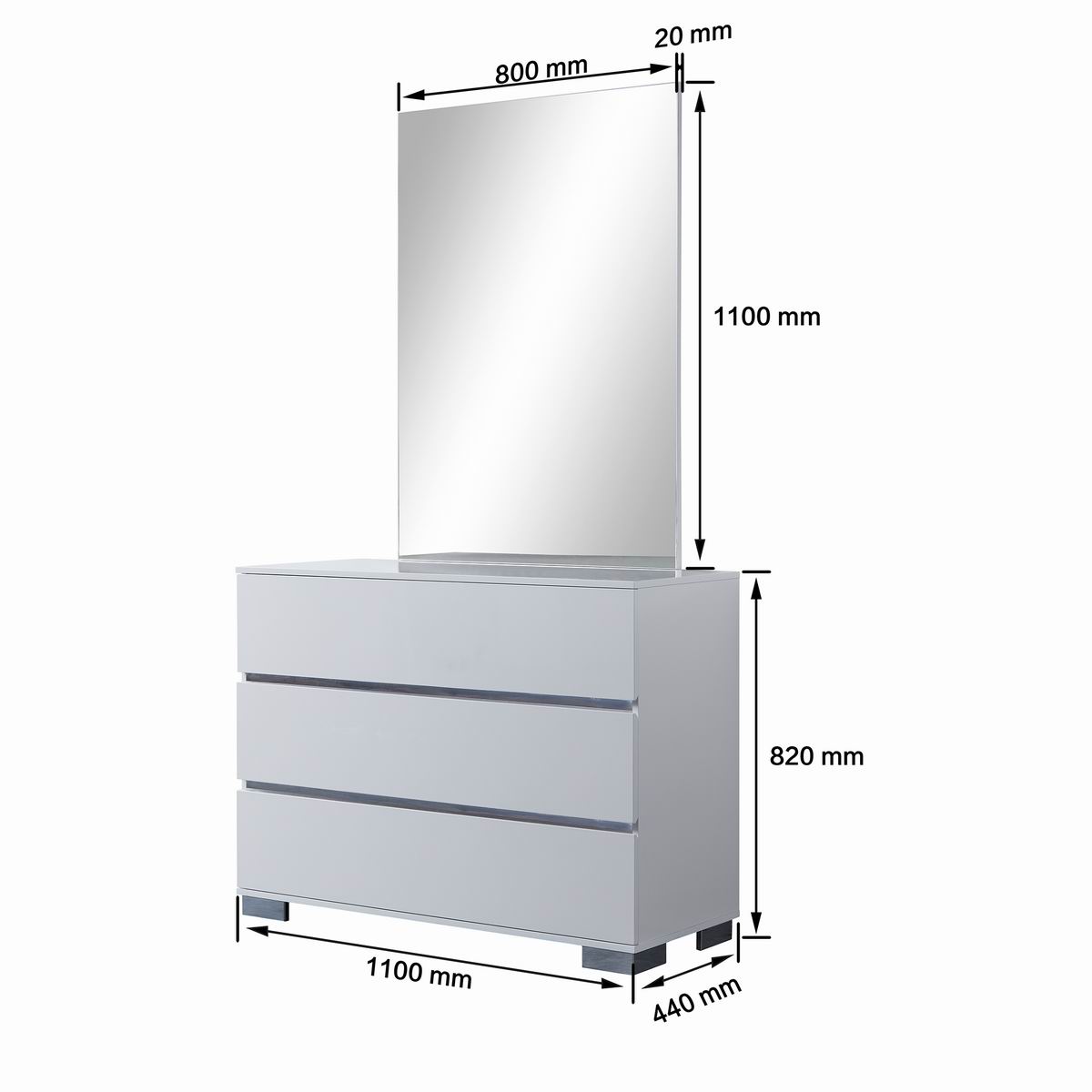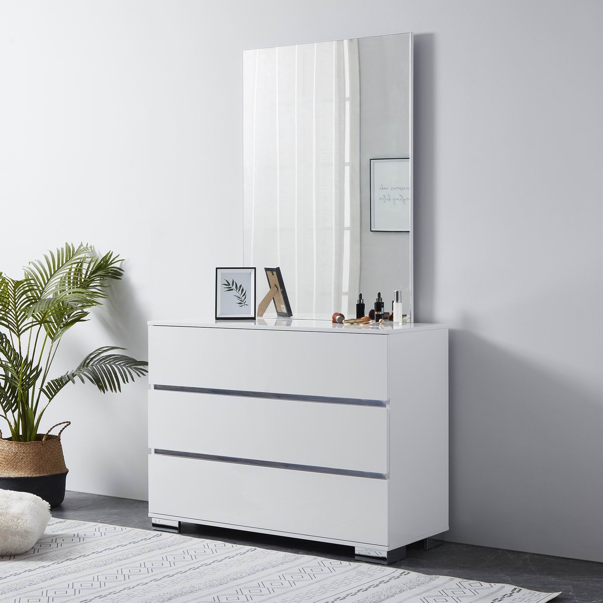 With the versatile white high gloss finish contrasting silver decorative line and silver color metal leg, this dressing table not only adds fashion elements to your bedroom, but also provides plenty of storage space. It's honeycomb packaging is eco friendly and recyclabe.