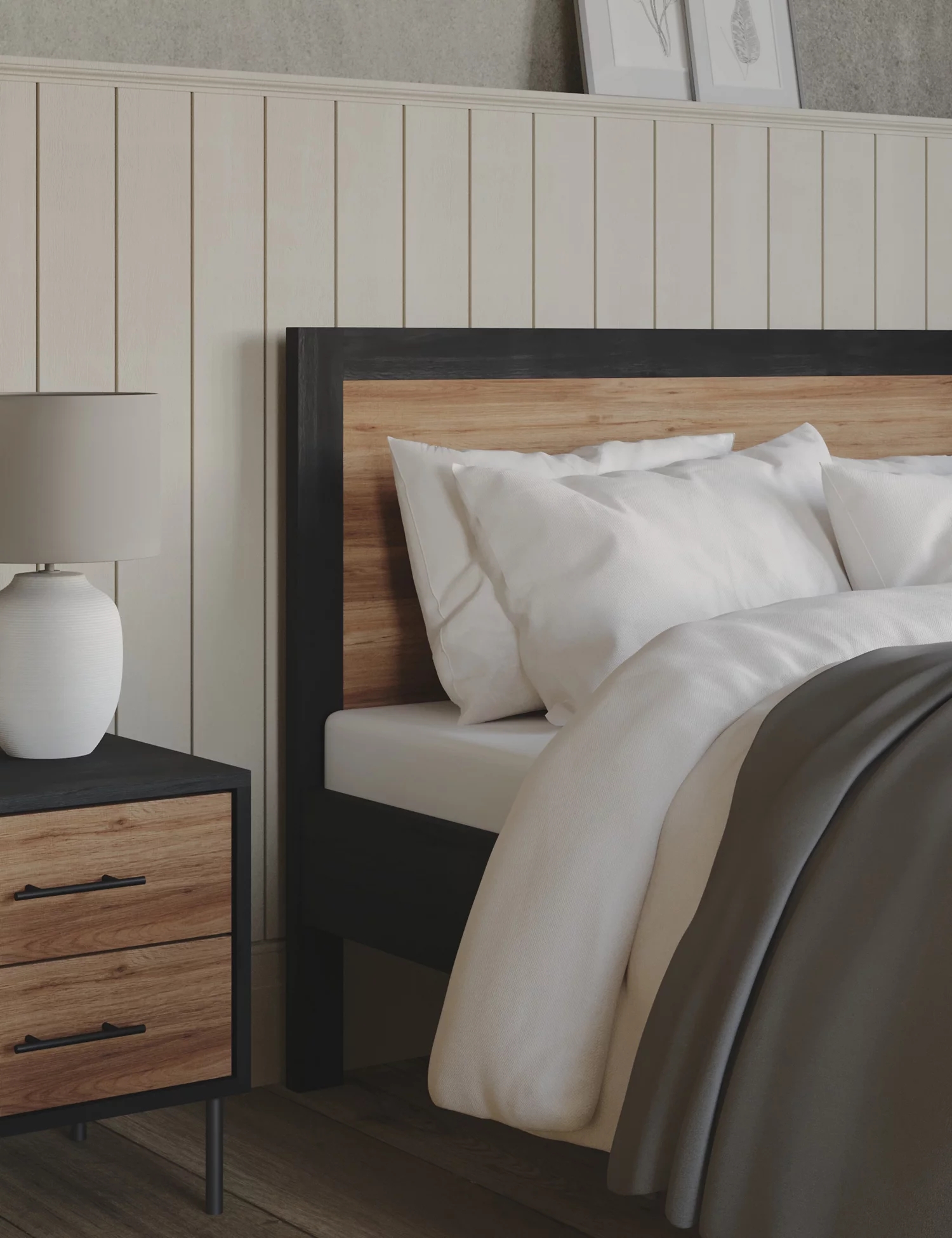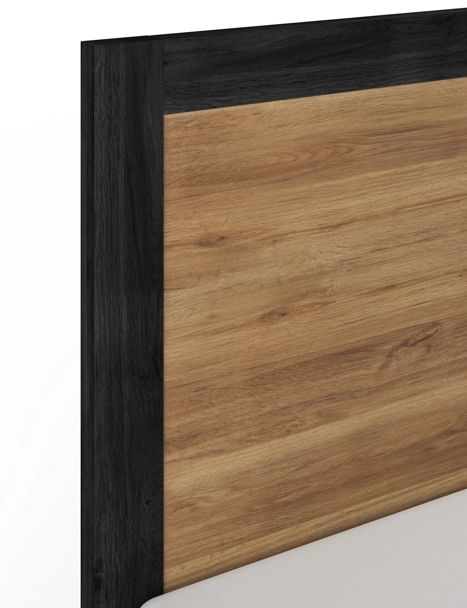 Effortlessly add a modern spin to your bedroom with this Holt bed. The wood-effect design features a contrasting headboard and narrow legs for an industrial-inspired feel.