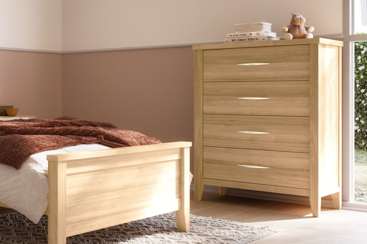 Stylishly affordable, the Lilydale 4-drawer tallboy in a contemporary colour, boasts clean lines and four handy storage drawers, plus a hidden jewellery compartment for secret storage!