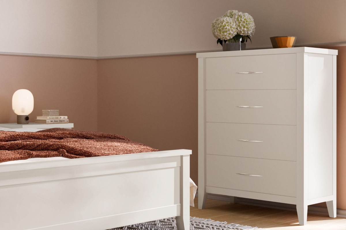Stylishly affordable, the Lilydale 4-drawer tallboy in a contemporary colour, boasts clean lines and four handy storage drawers, plus a hidden jewellery compartment for secret storage!