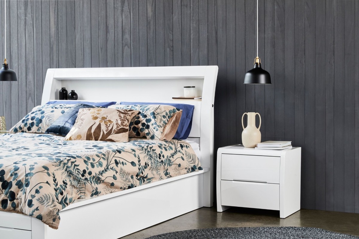The Wellard bedside offers style and practicality. Elegant curve design with two large drawers provides ample storage.