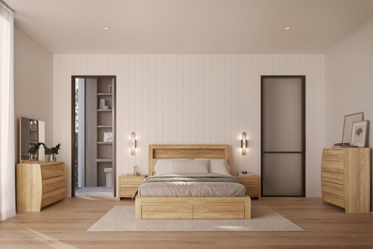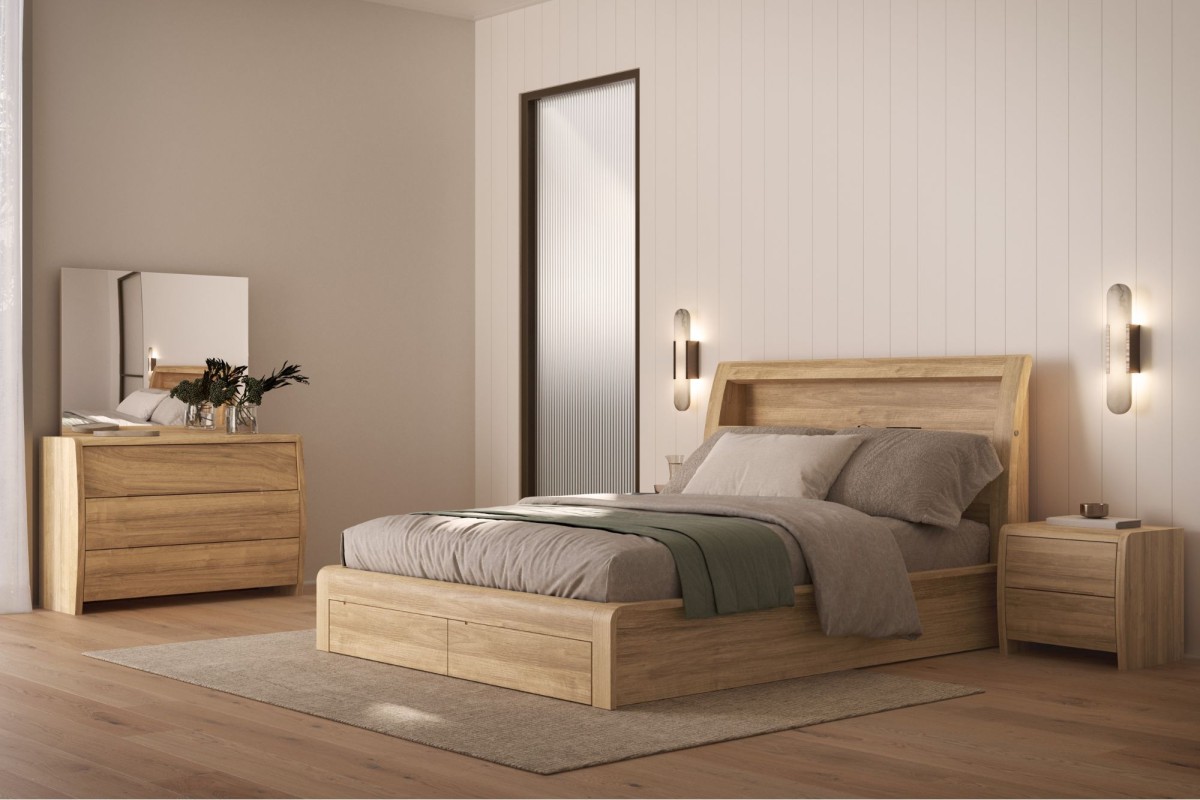 The Wellard bedside offers style and practicality. Elegant curve design with two large drawers provides ample storage.
