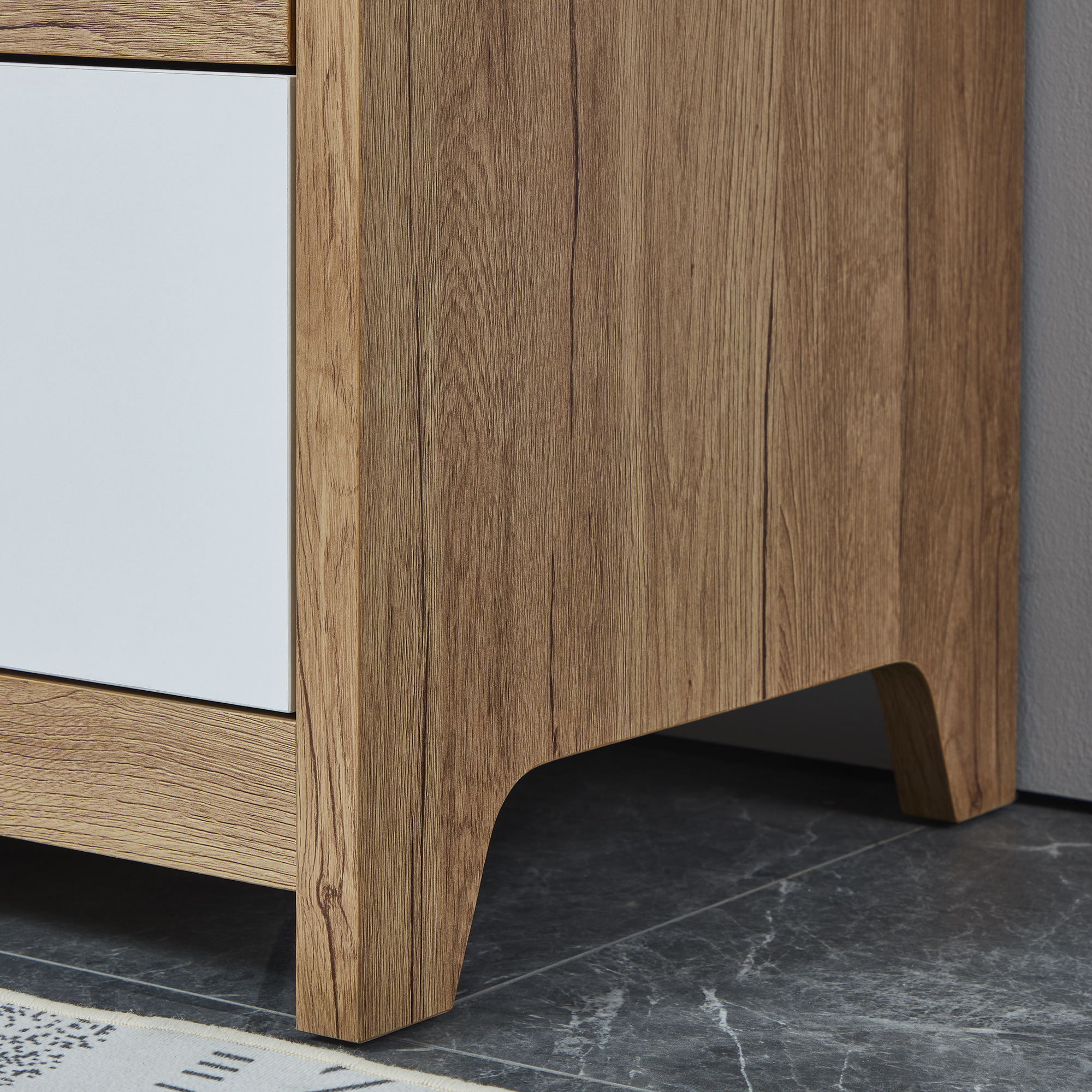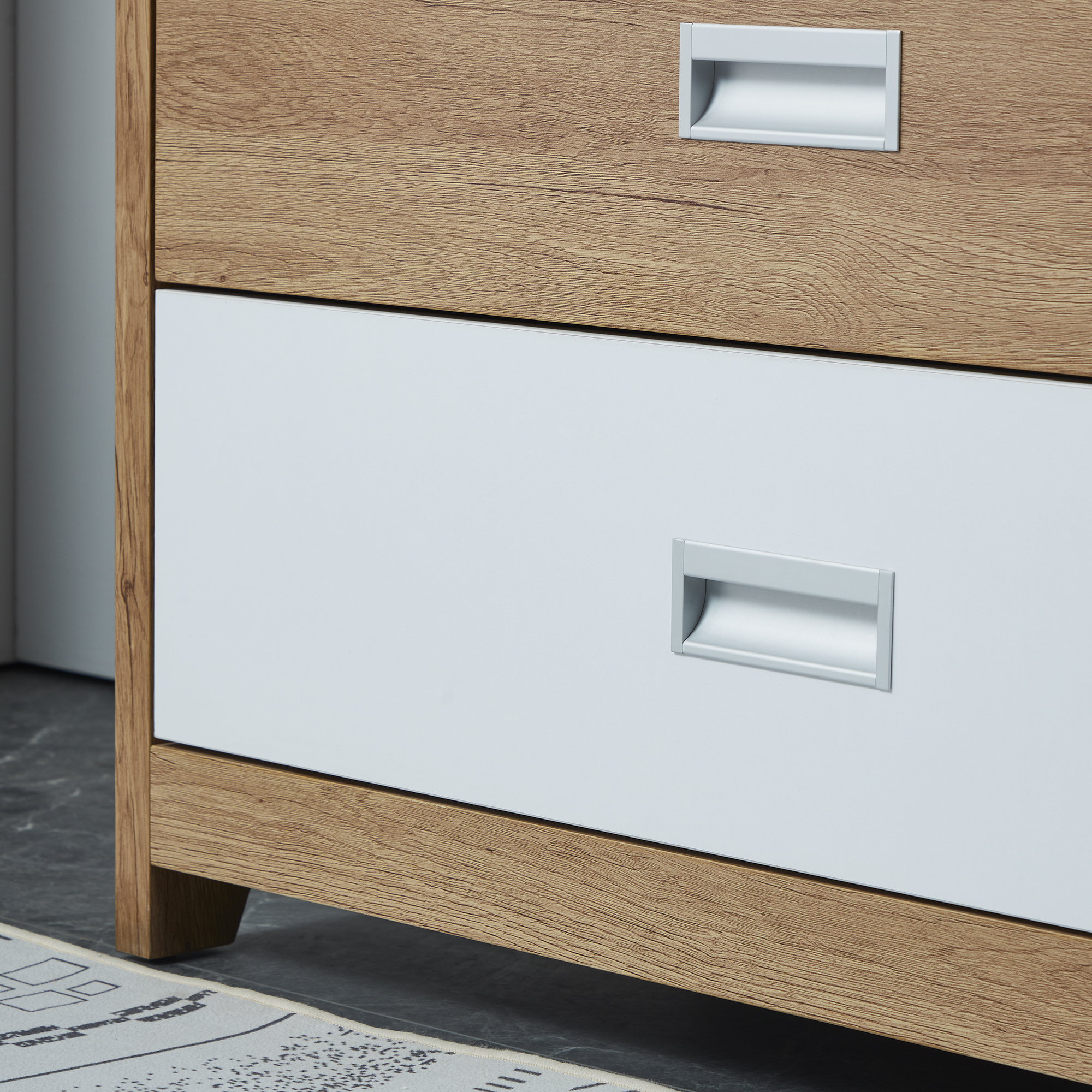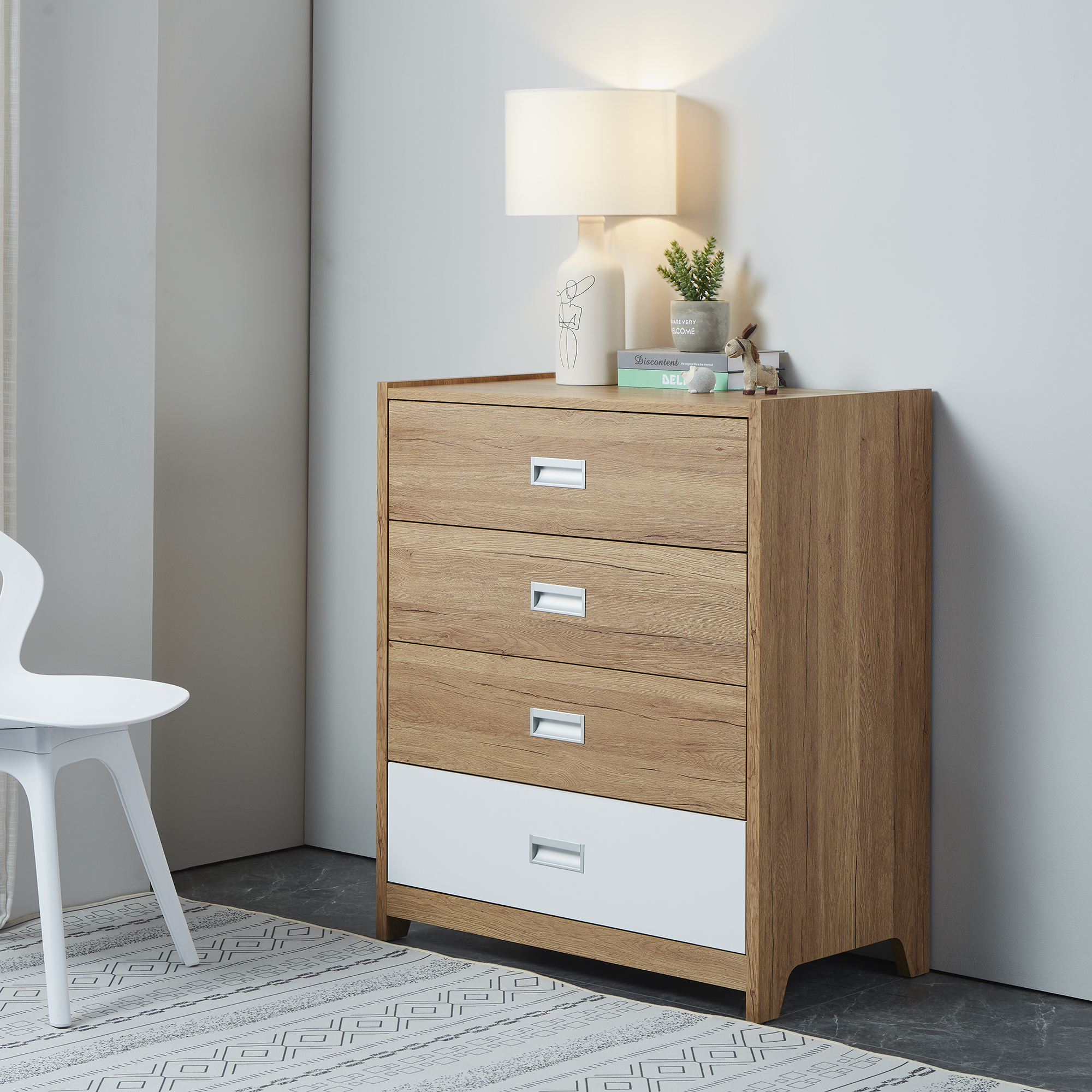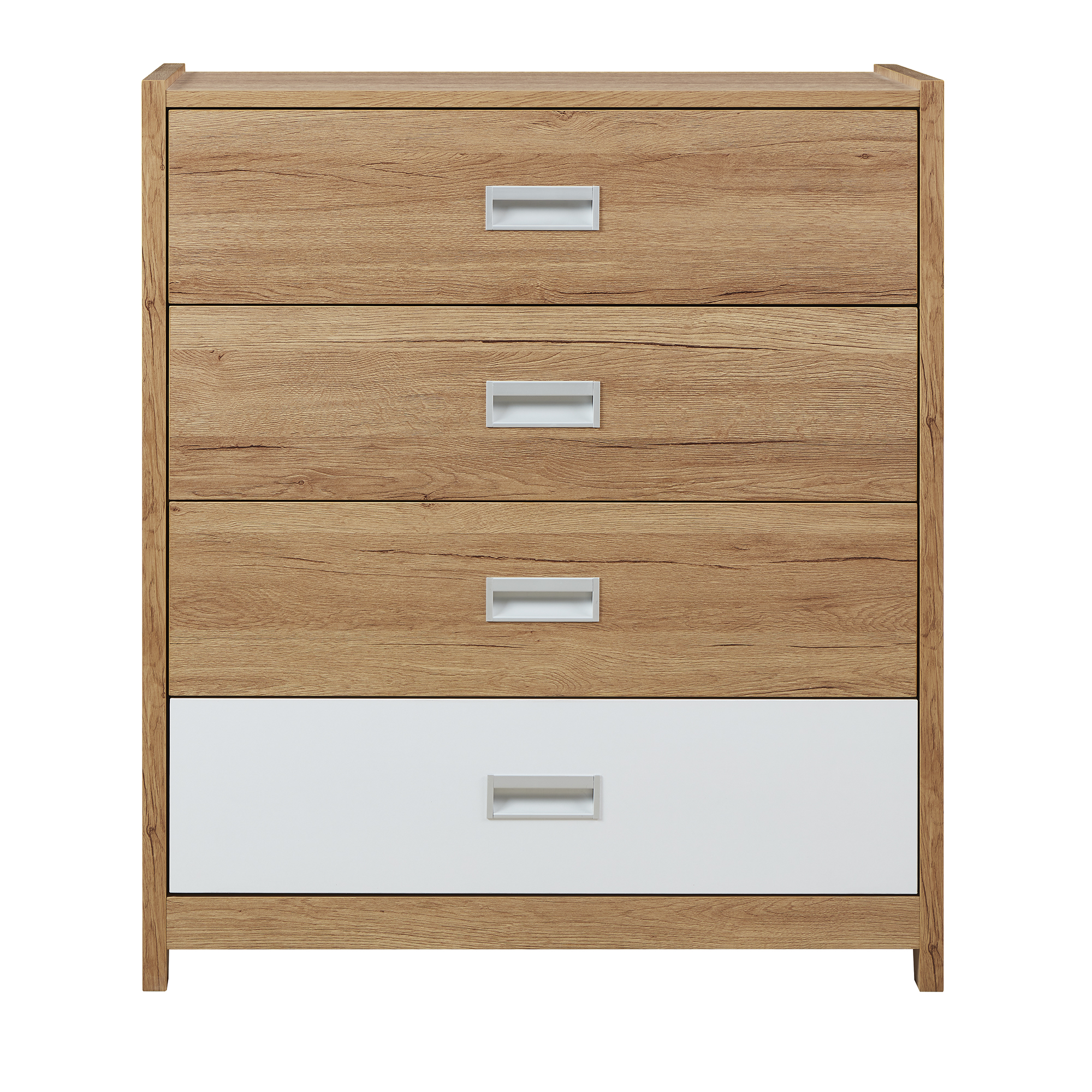 The Scandinavian inspired Ashley four-drawer tallboy features curved lines and a playful pop of colour. Finished in easy to clean oak it combines function and fun!