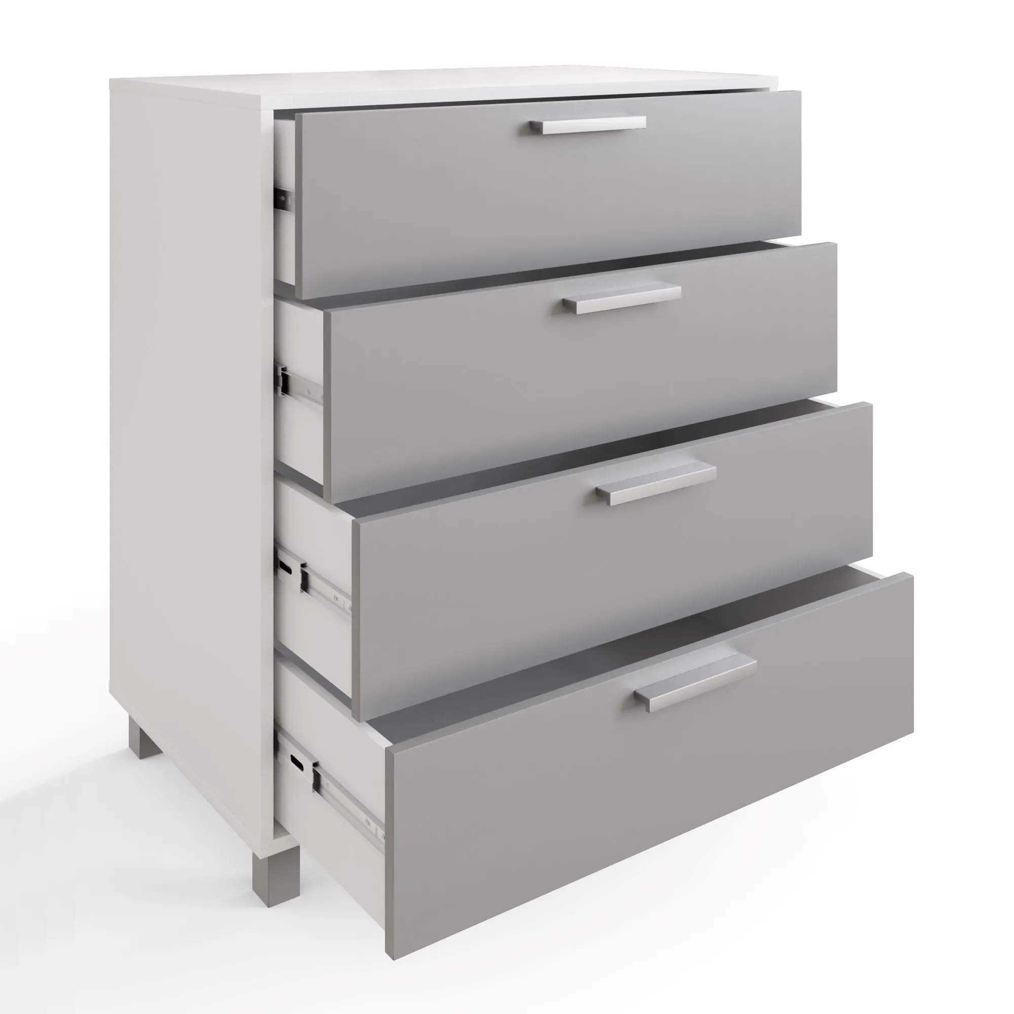 Textured matt white finish for a sleek modern look and matt grey doors. Super quick assembly with the patented click together furniture system. Super fast, super strong and no visible assembly fixings.