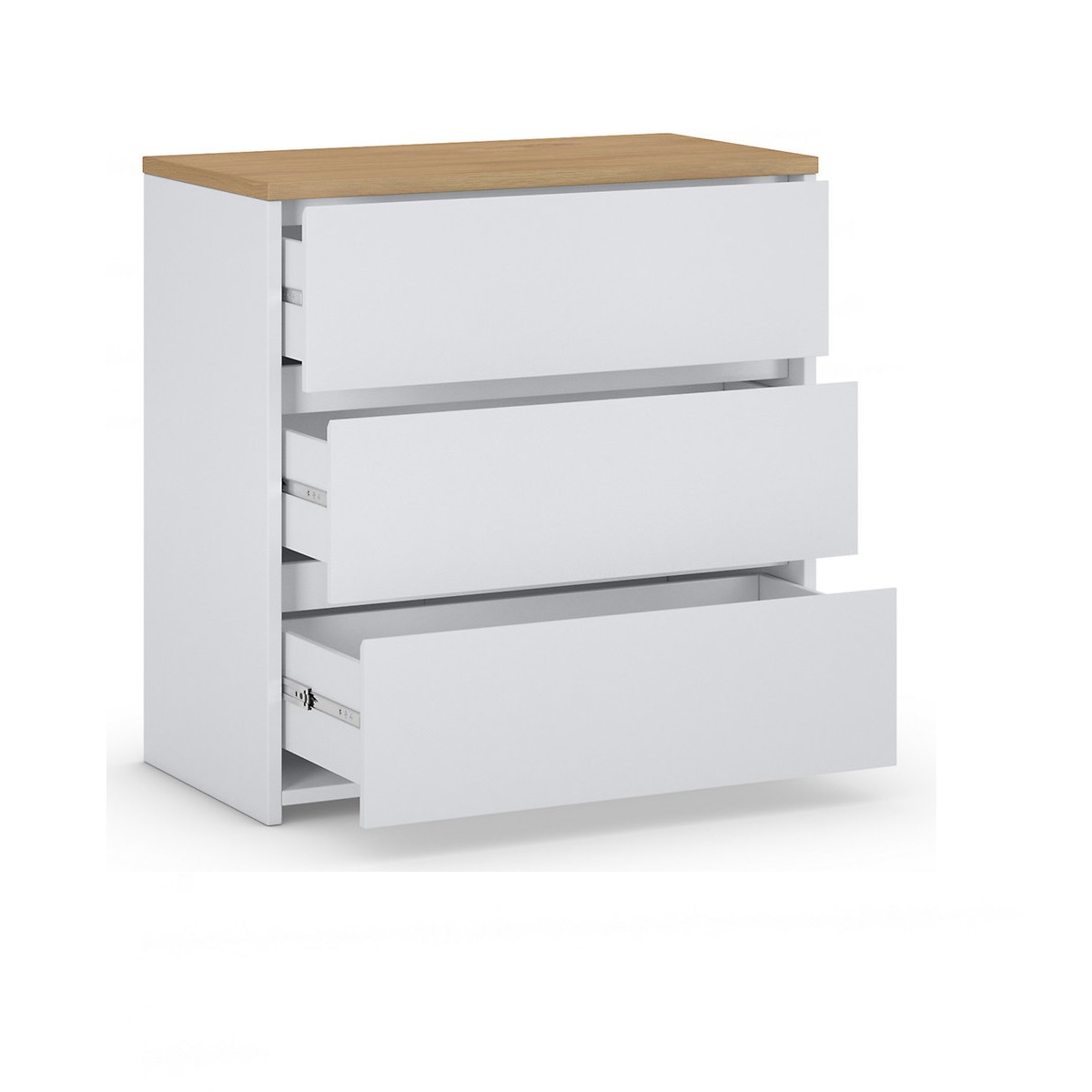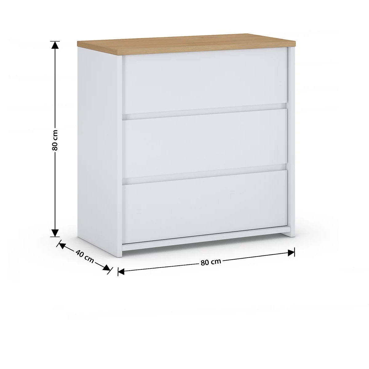 From the Loft collection, this chest of drawers has a simple, neutral design and an oak-effect finish that works well with any interior style. The three wide drawers provide ample storage space for larger items.
