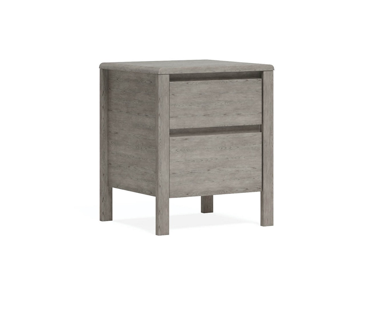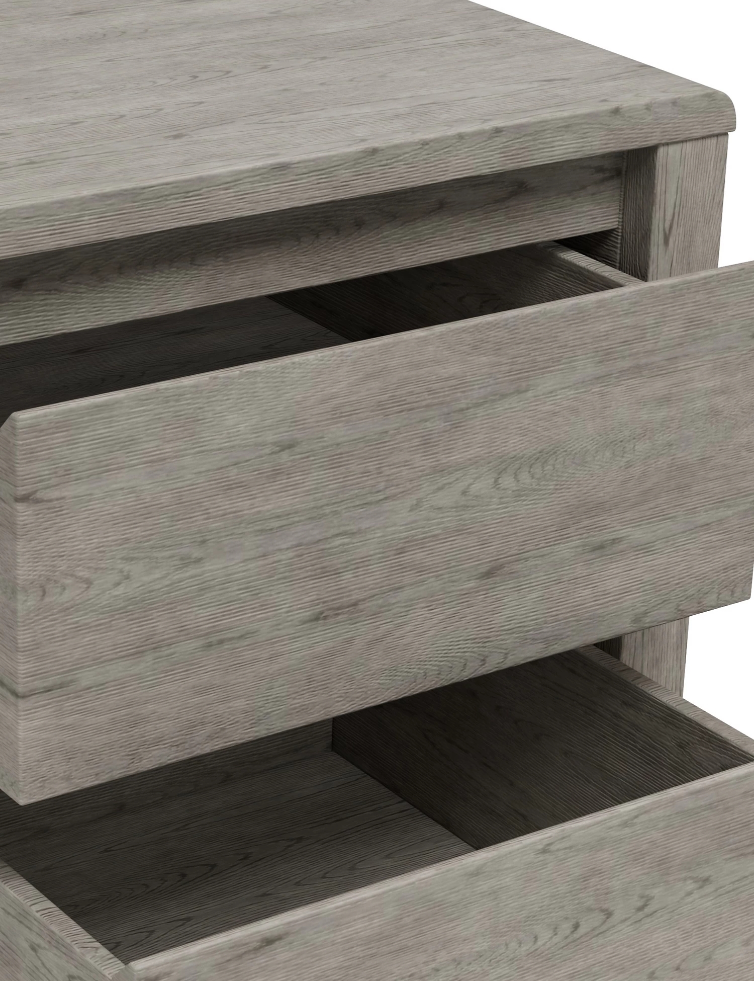 Add extra storage to your bedroom, with this two-drawer bedside table from the Loxton range. It's made with a smaller drawer above and a deeper one below – both mounted on slick metal runners. The top provides a handy spot for a lamp and favourite trinkets. Minimalist groove handles ensure a contemporary feel. Matching pieces are available.