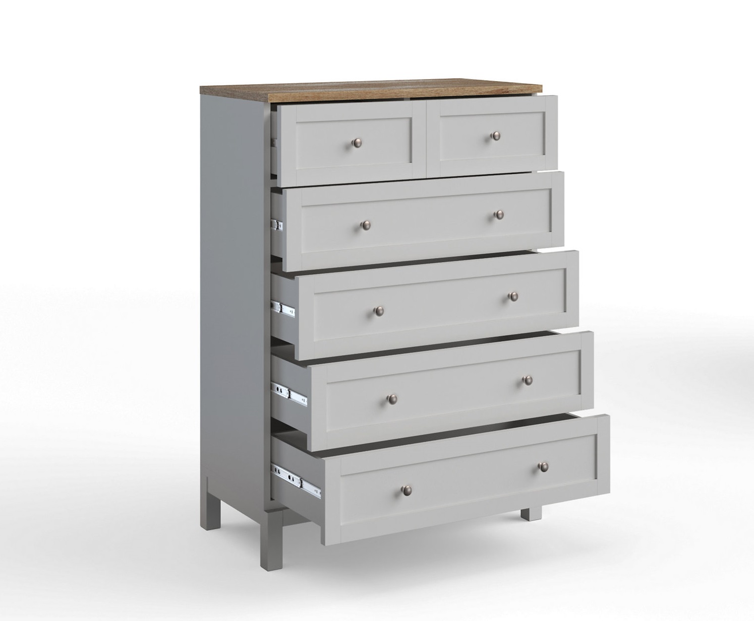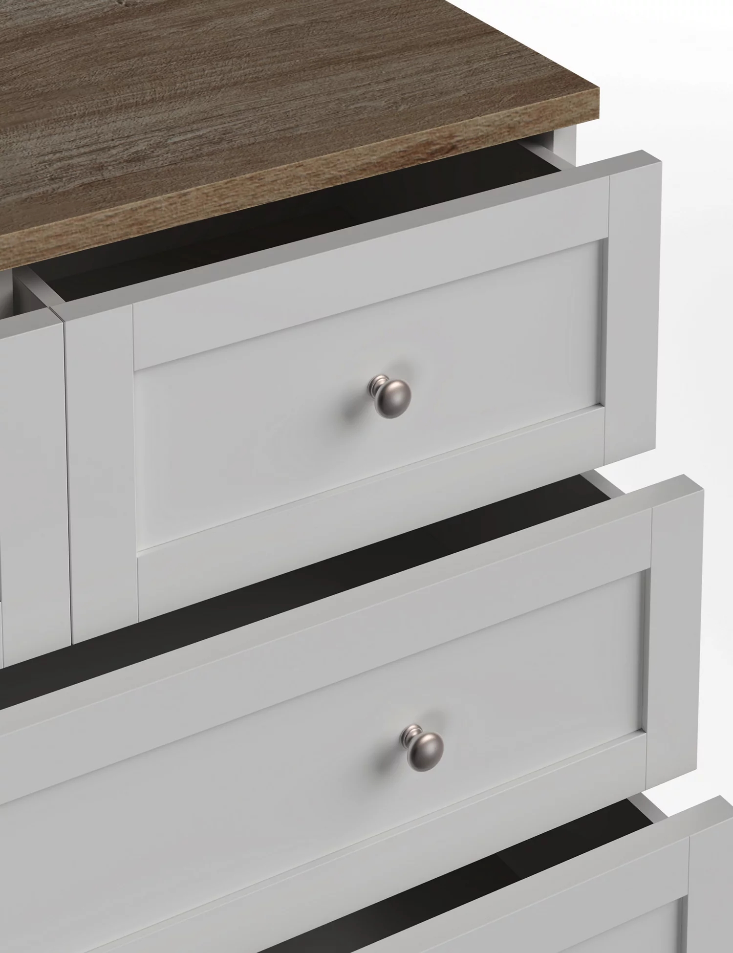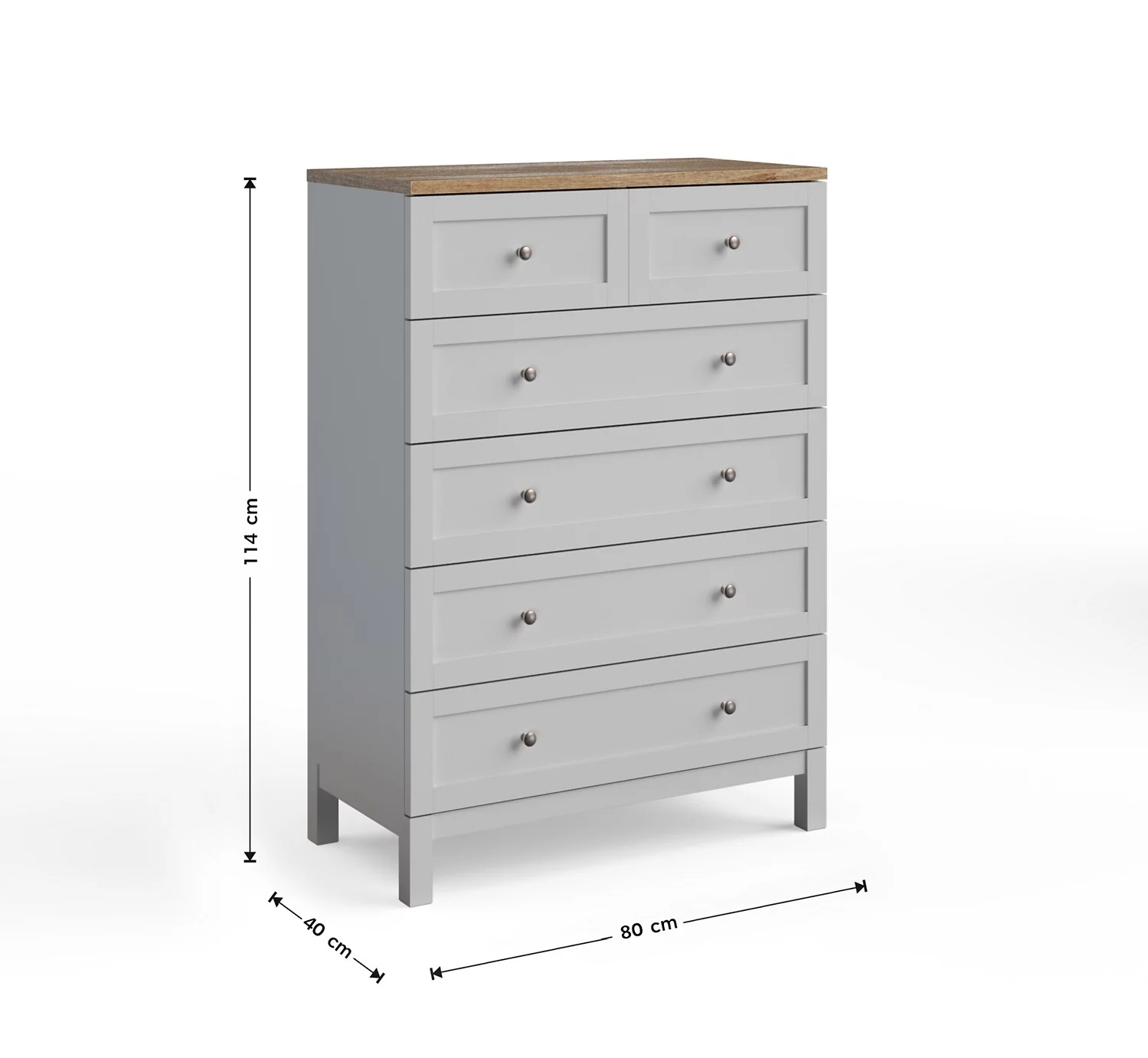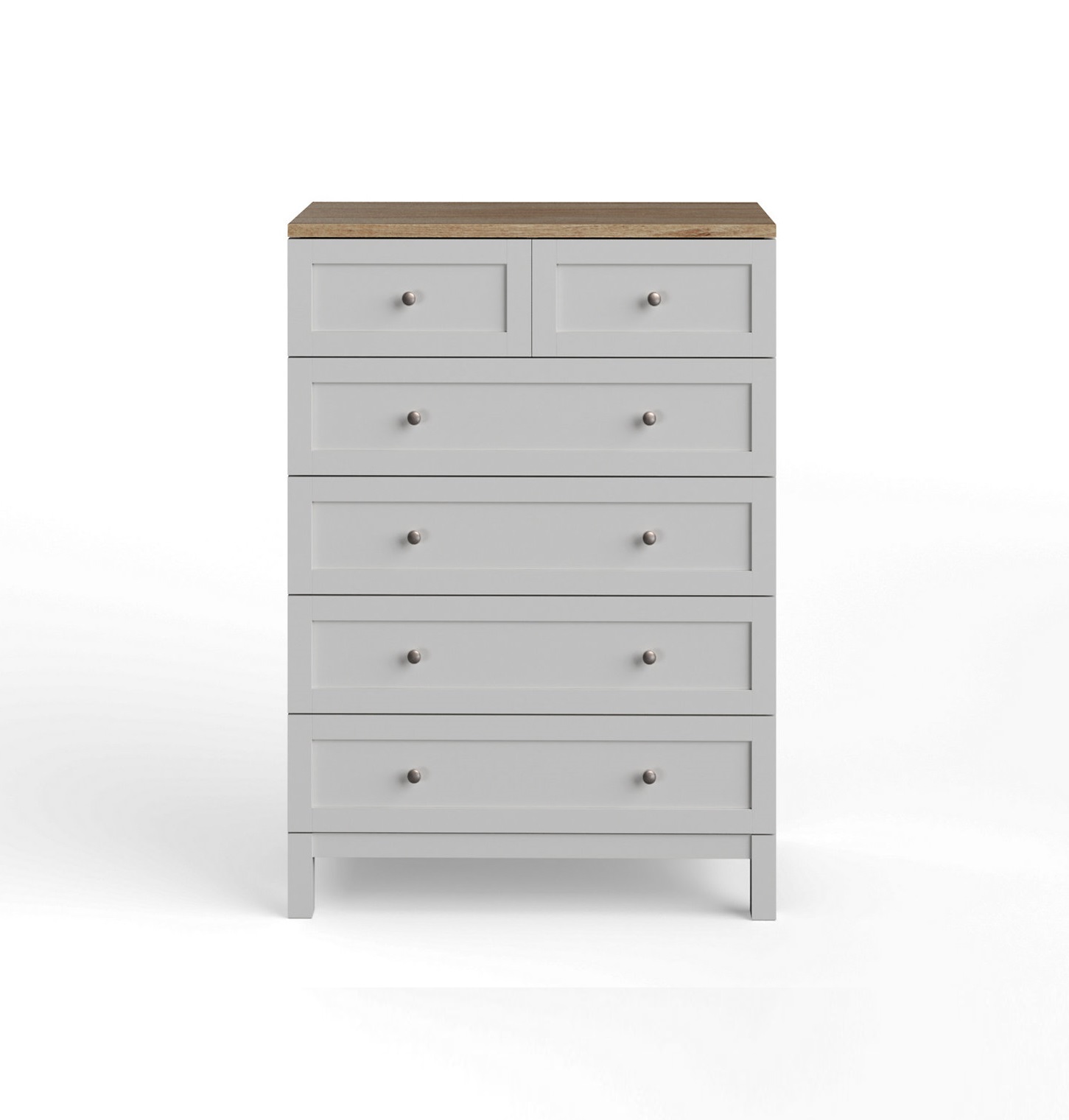 Opt for minimalist and contemporary design with this chest of drawers from the Salcombe range. It features six draws, with one divided draw at the top and subtle knob fixtures for a modern look. It's made from responsibly sourced wood that's easy to clean.