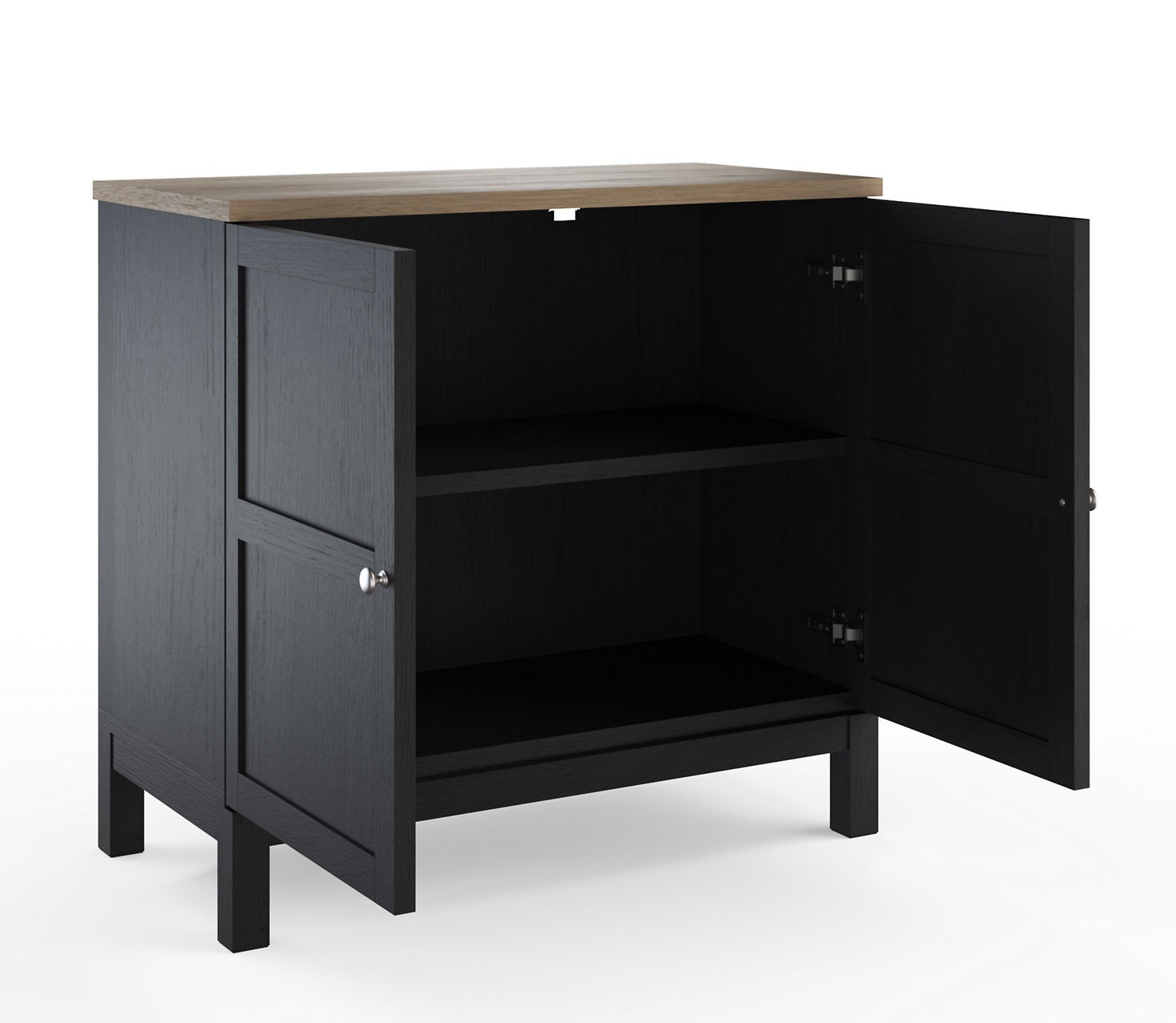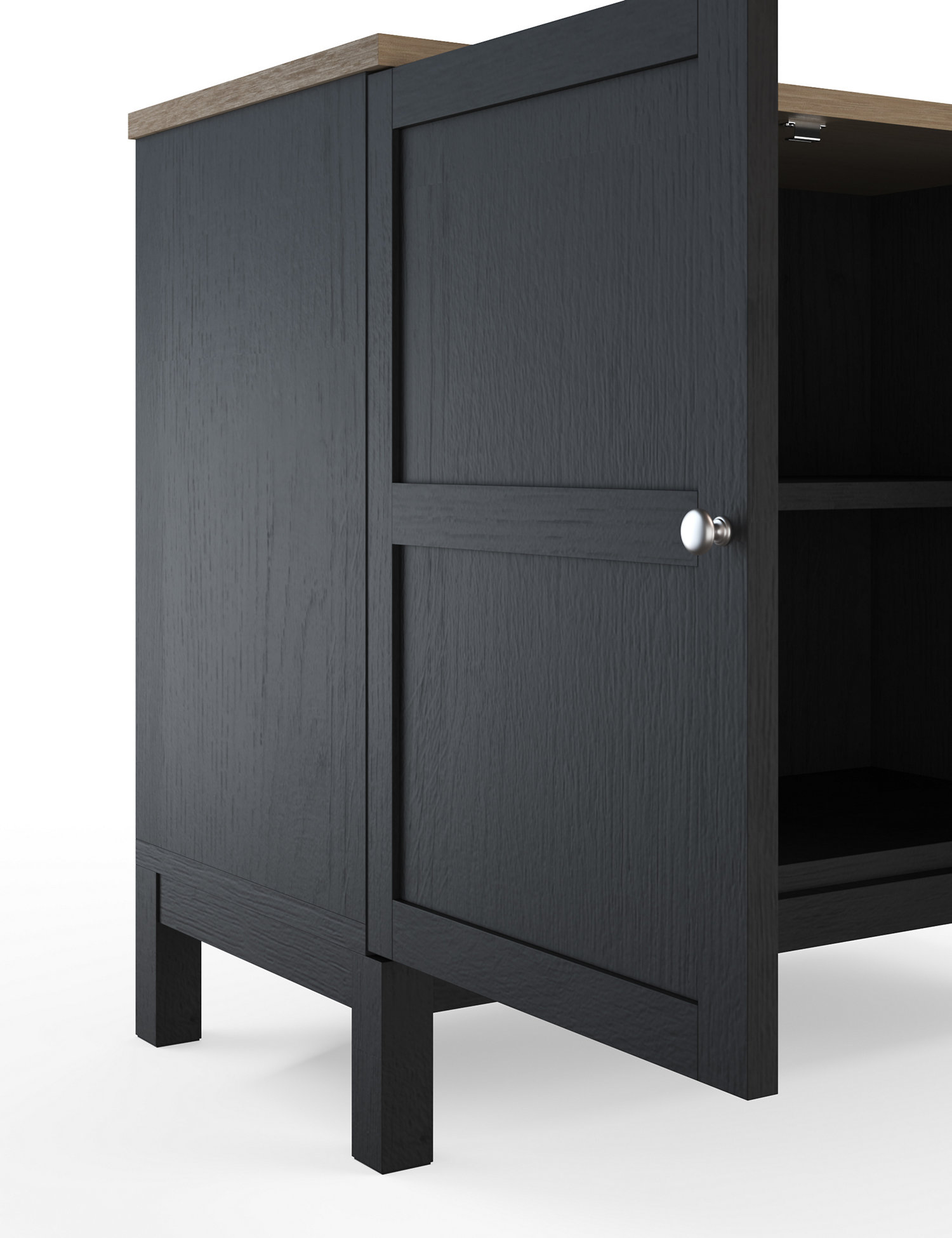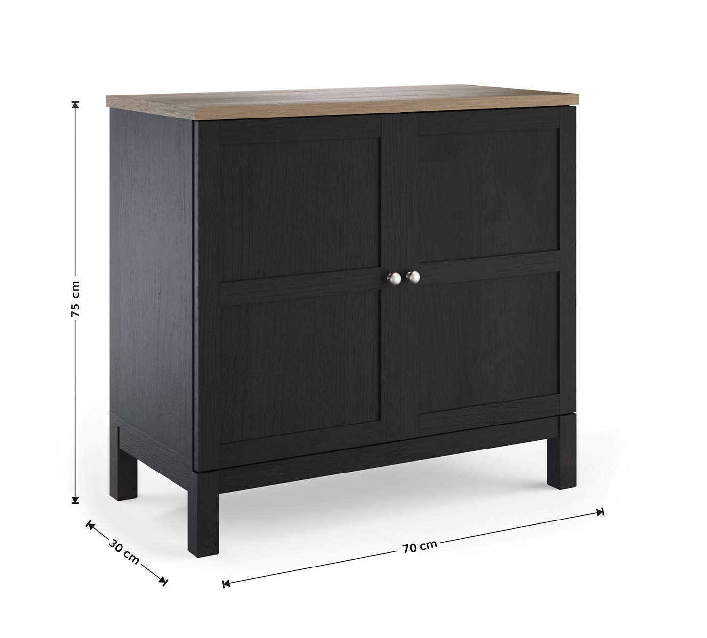 The space-saving Salcombe sideboard will add a modern touch to your home. This compact two-door piece is crafted from responsibly sourced wood and opens to reveal inner shelving. A panel design on the front creates extra depth and brushed metal handles give a contemporary finish. Choose from a range of colours to find the perfect piece for your home.