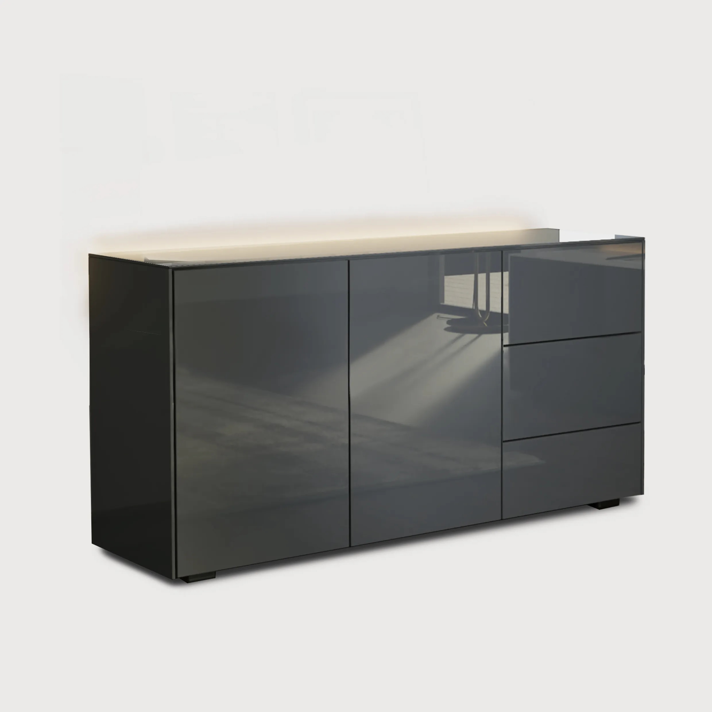 High gloss quality paint finish with matching glass top. Highly scratch resistant internal textured finish. Passive built in air flow ventilation Adjustable internal shelves, castor wheels. Fantastic storage capacity. Self build, quick assemble system.