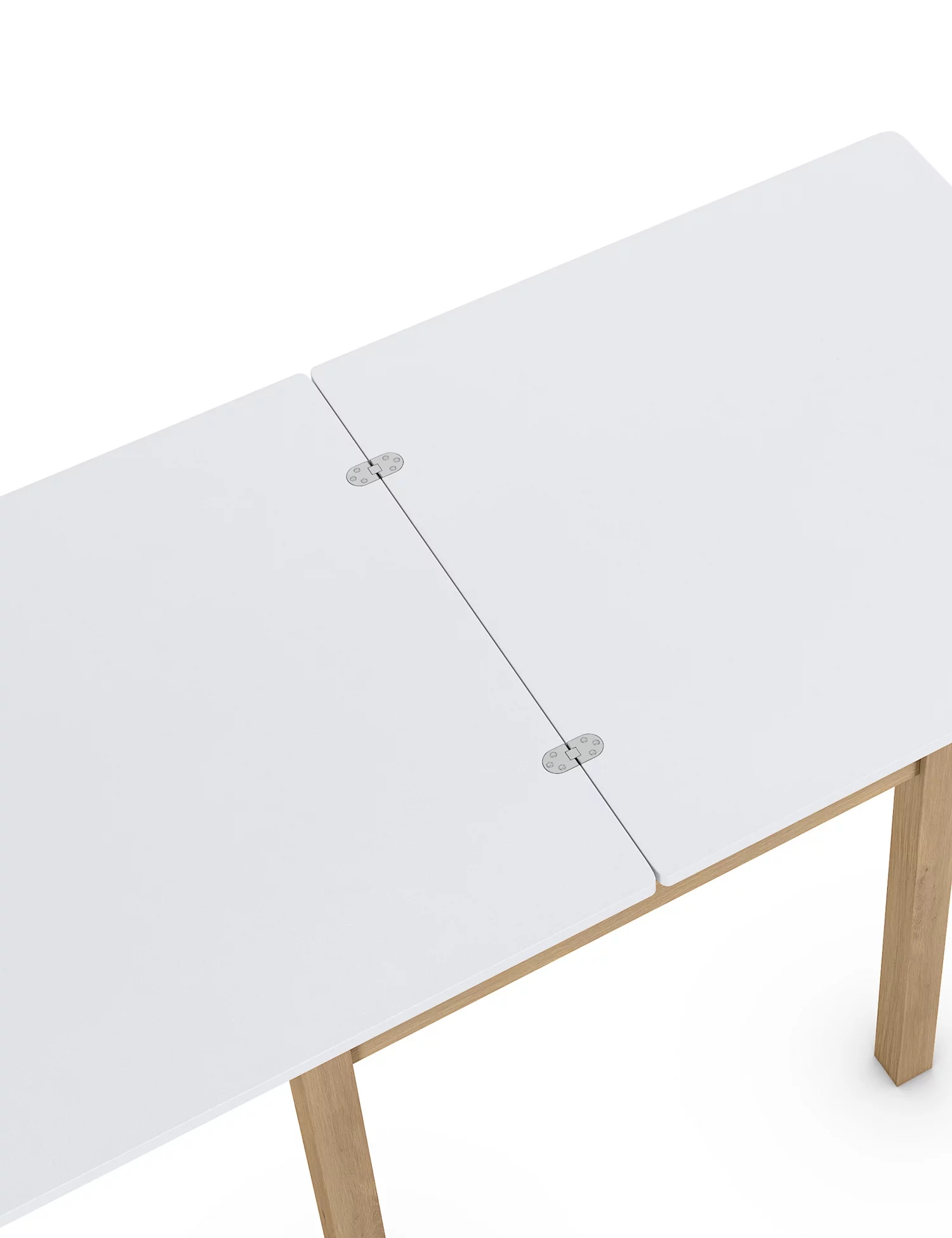 This dining table combines a clean, contemporary look that's ideal for modern living. When you have guests, you can easily add extra places with its extendable flip-top design for up to six people.