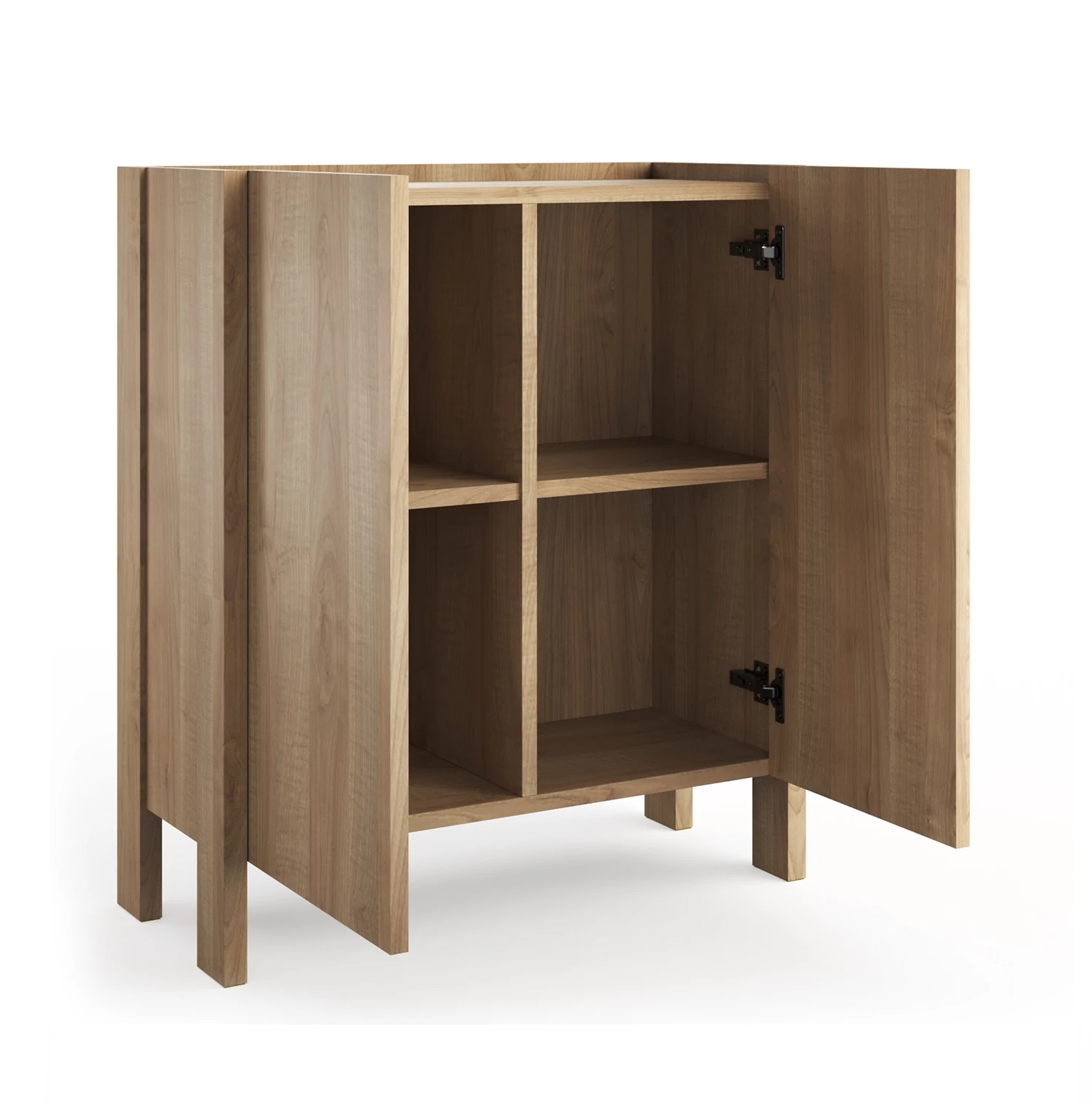 This compact two-door sideboard is the perfect storage solution for smaller spaces. It's crafted from responsibly sourced wood with a versatile oak finish, and features doors with discreet integrated handles. Its stylish and simple design gives a truly modern look.