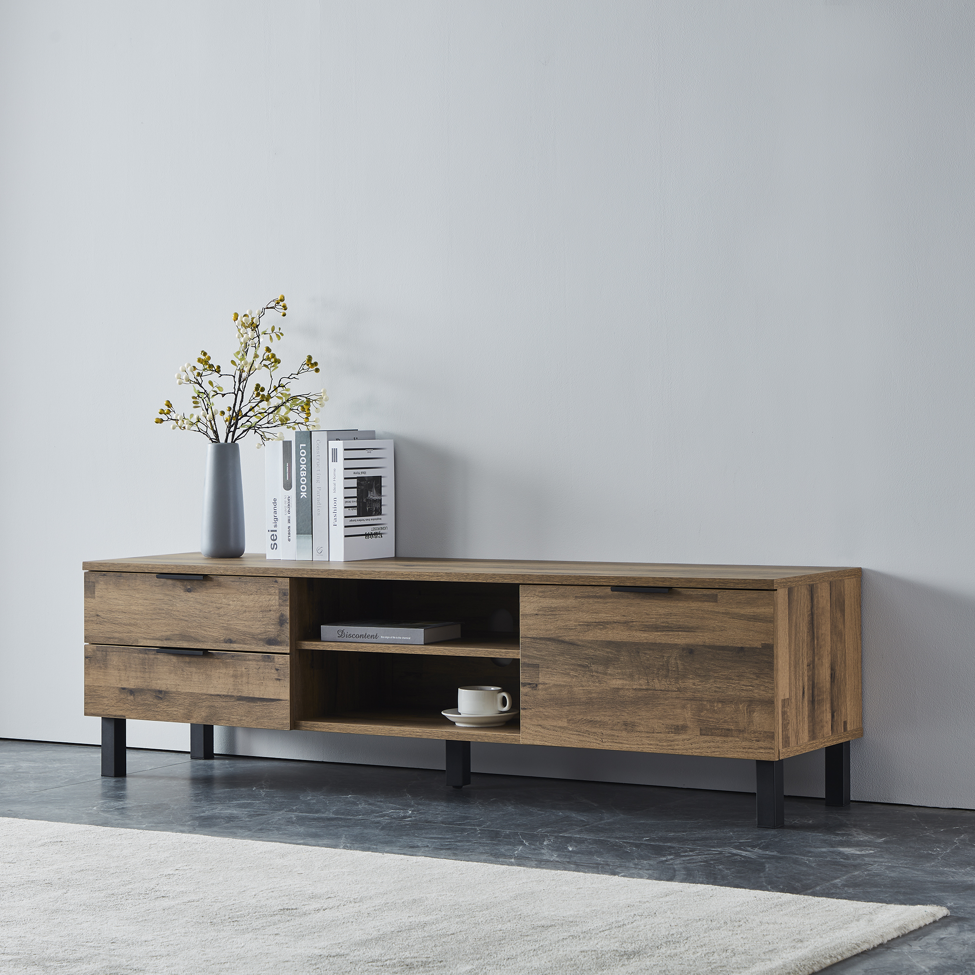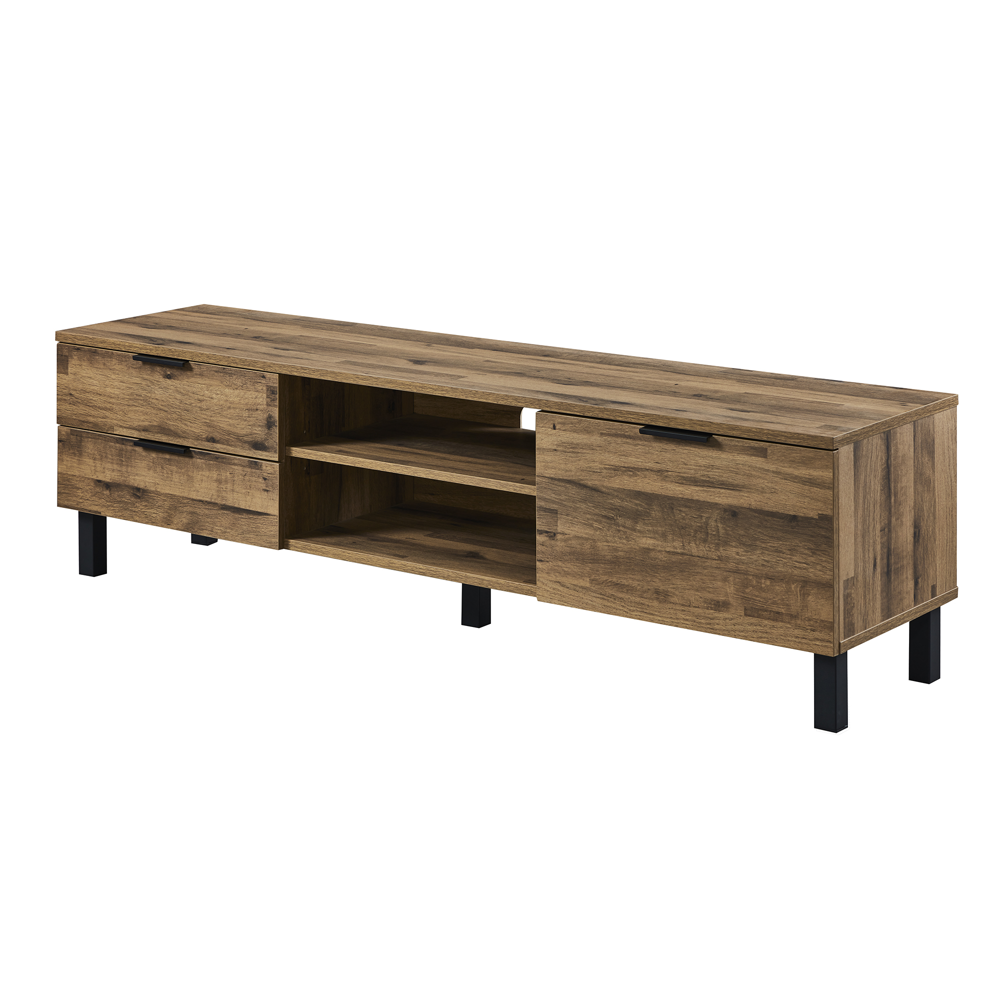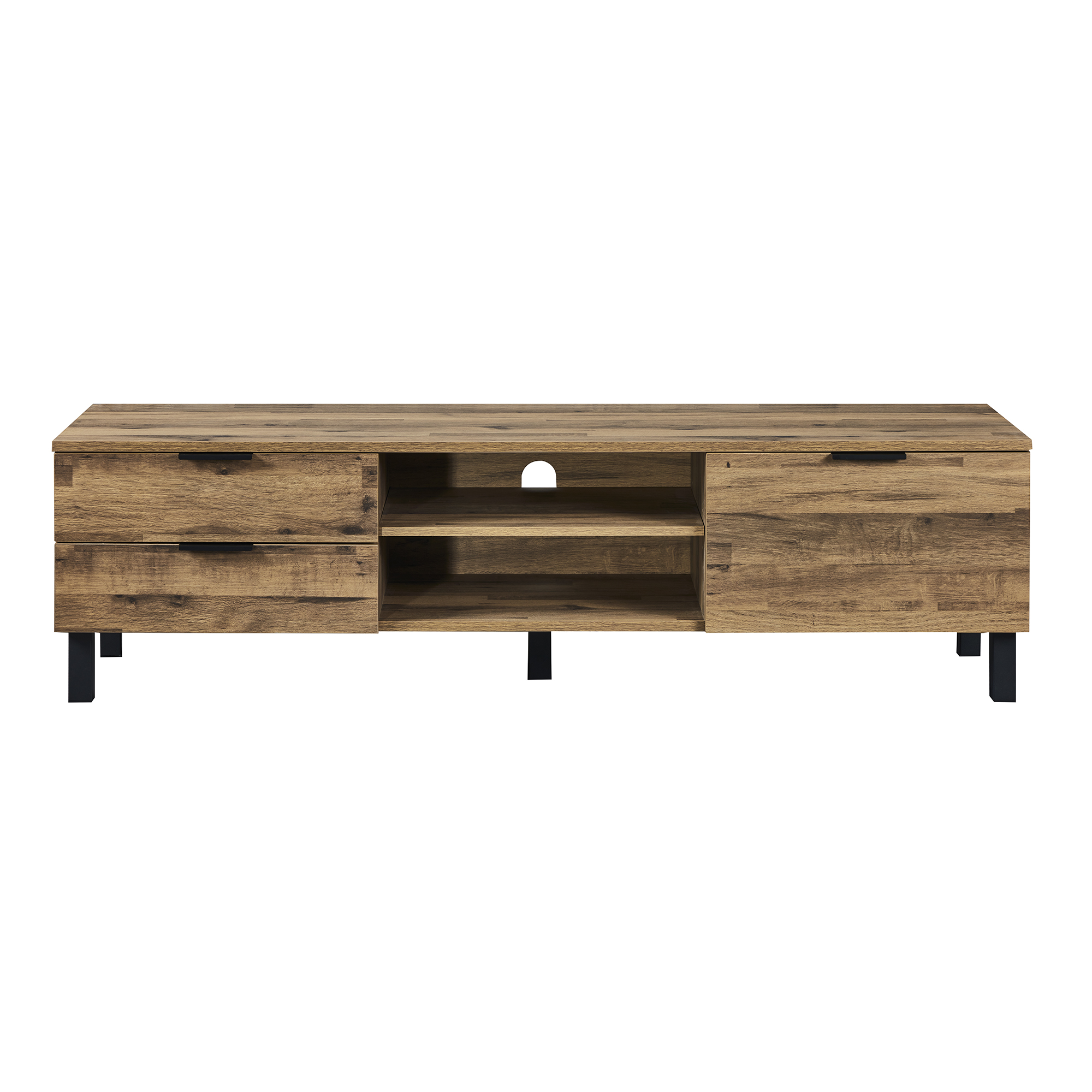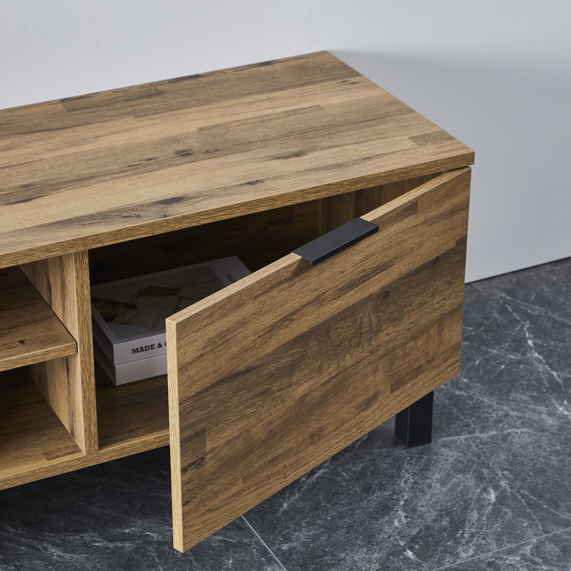 With two drawers in left, one adjustable shelf in the middle and a door in the right, this TV cabinet offers plenty of storage room.