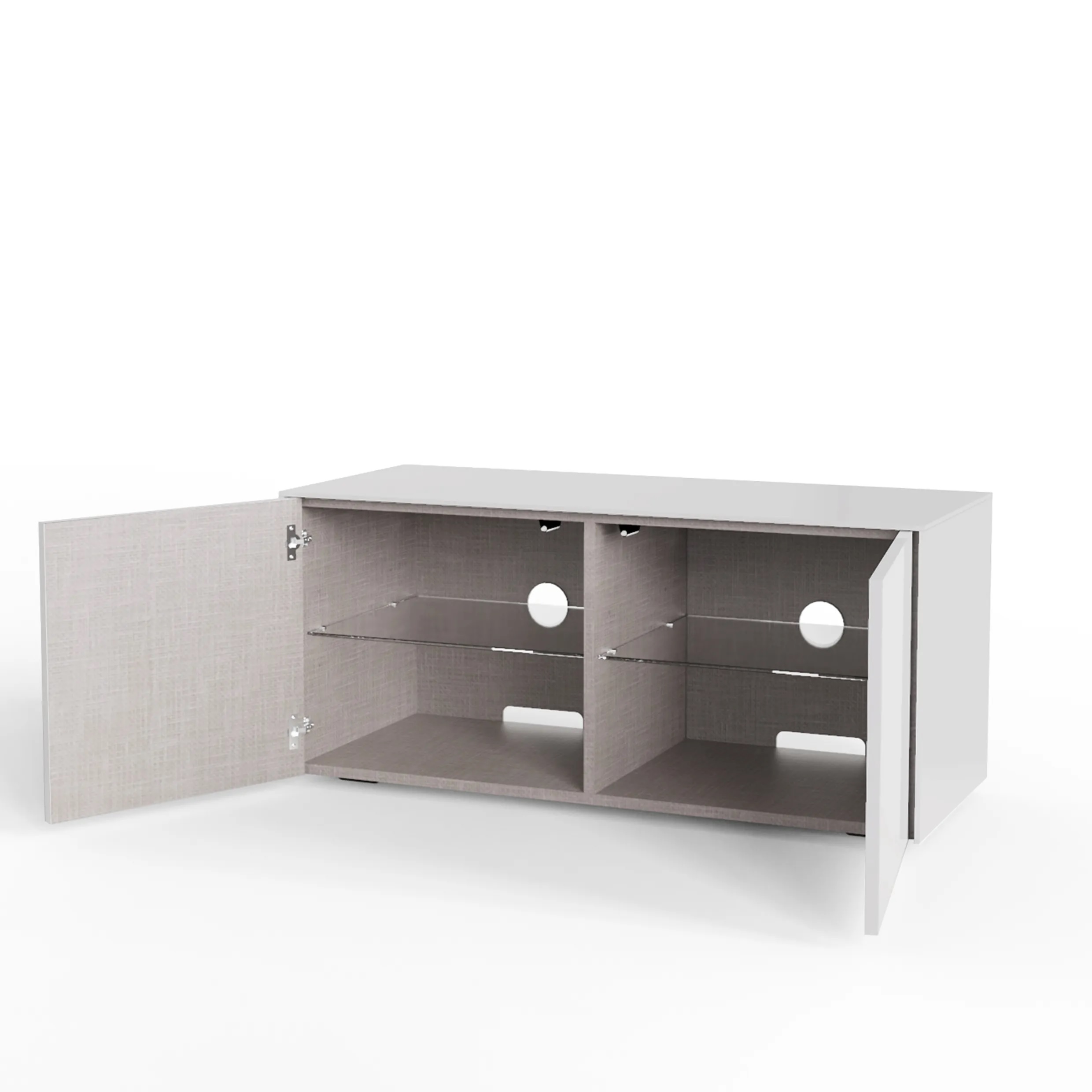 High gloss quality paint finish with matching glass top. Highly scratch resistant textured finish. Constructed from only solid 18mm board. Passive built in air flow ventilation Adjustable internal shelves, castor wheels. Fantastic storage capacity. Self build, quick assemble system.