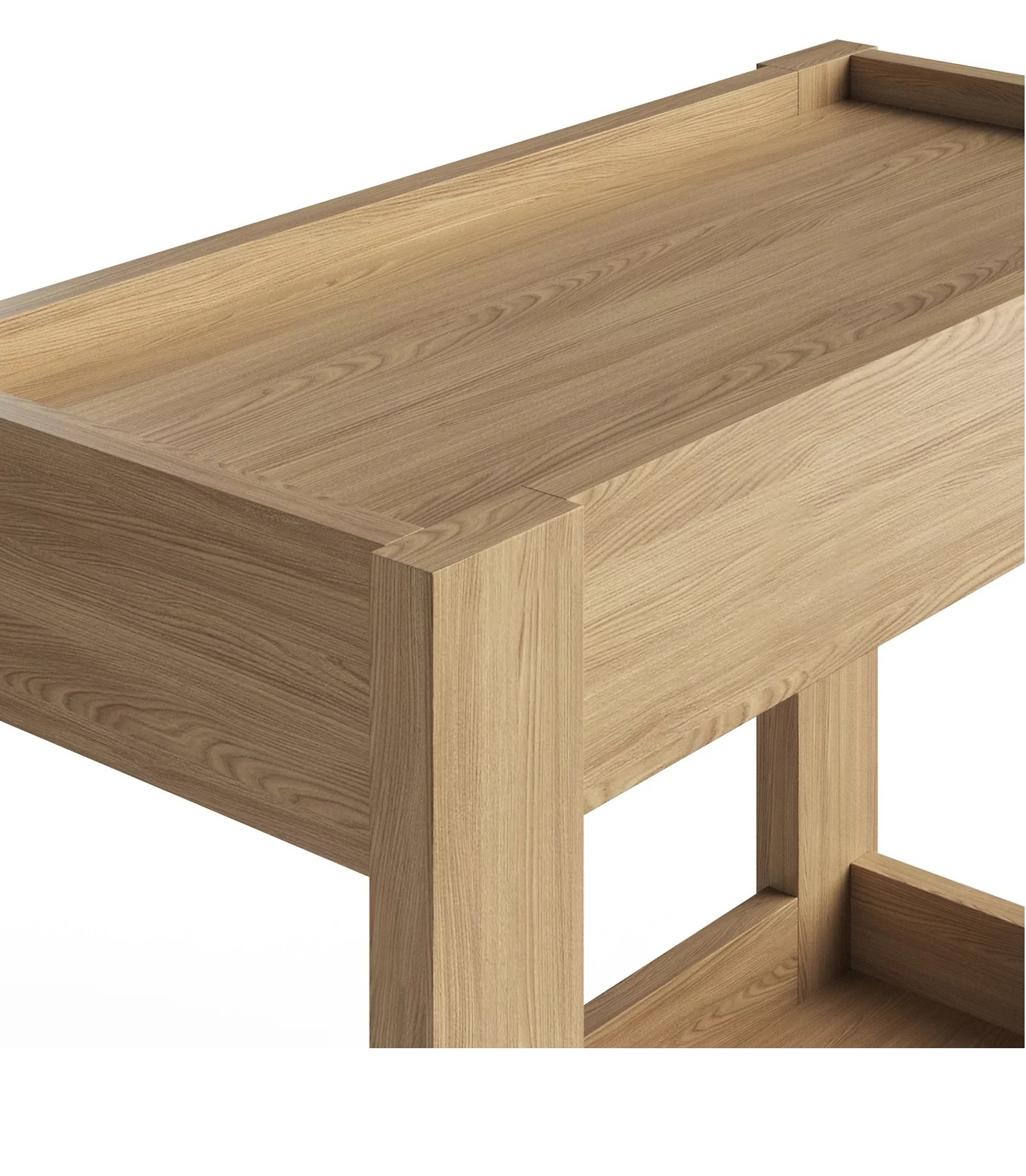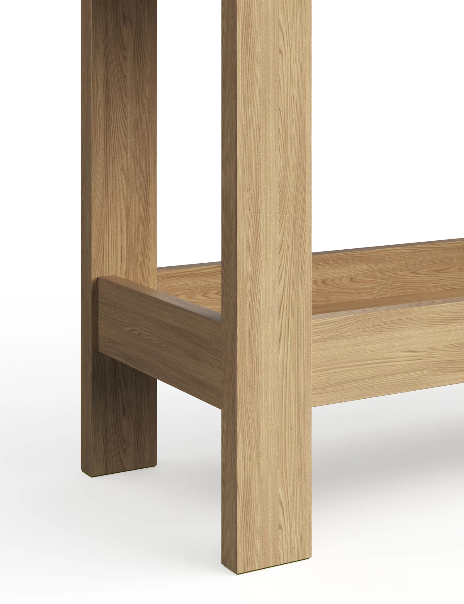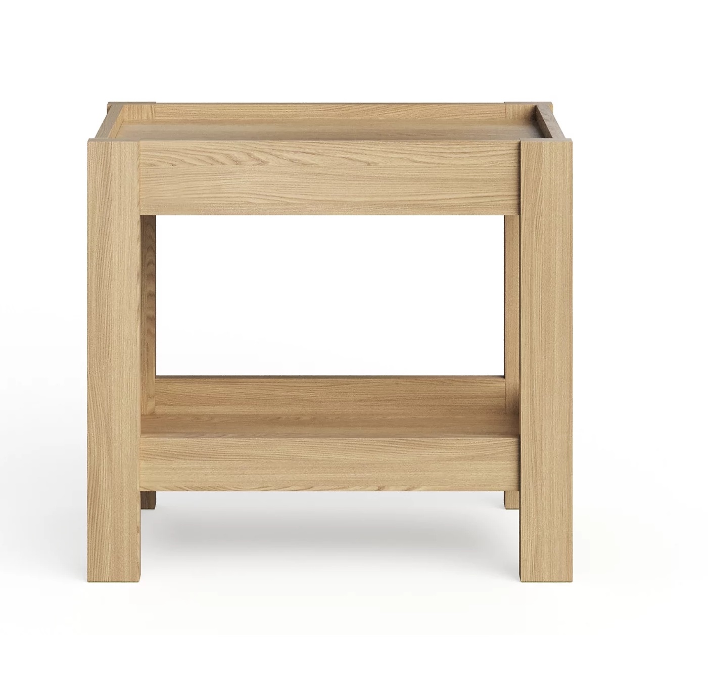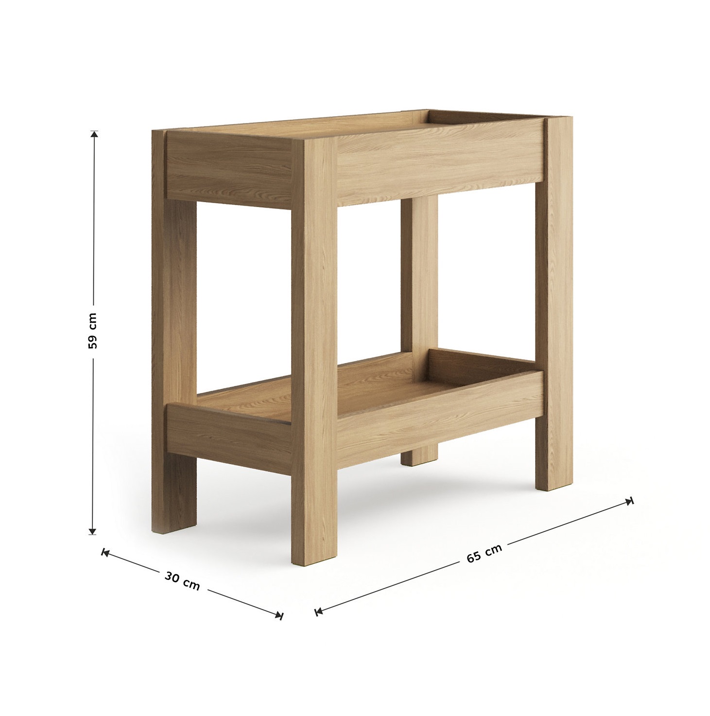 This side table has an understated design that will work in both modern and traditional homes. This compact, space-saving piece is crafted from responsibly sourced wood. It has two handy shelves, allowing you to display a lamp on the top and store magazines underneath.