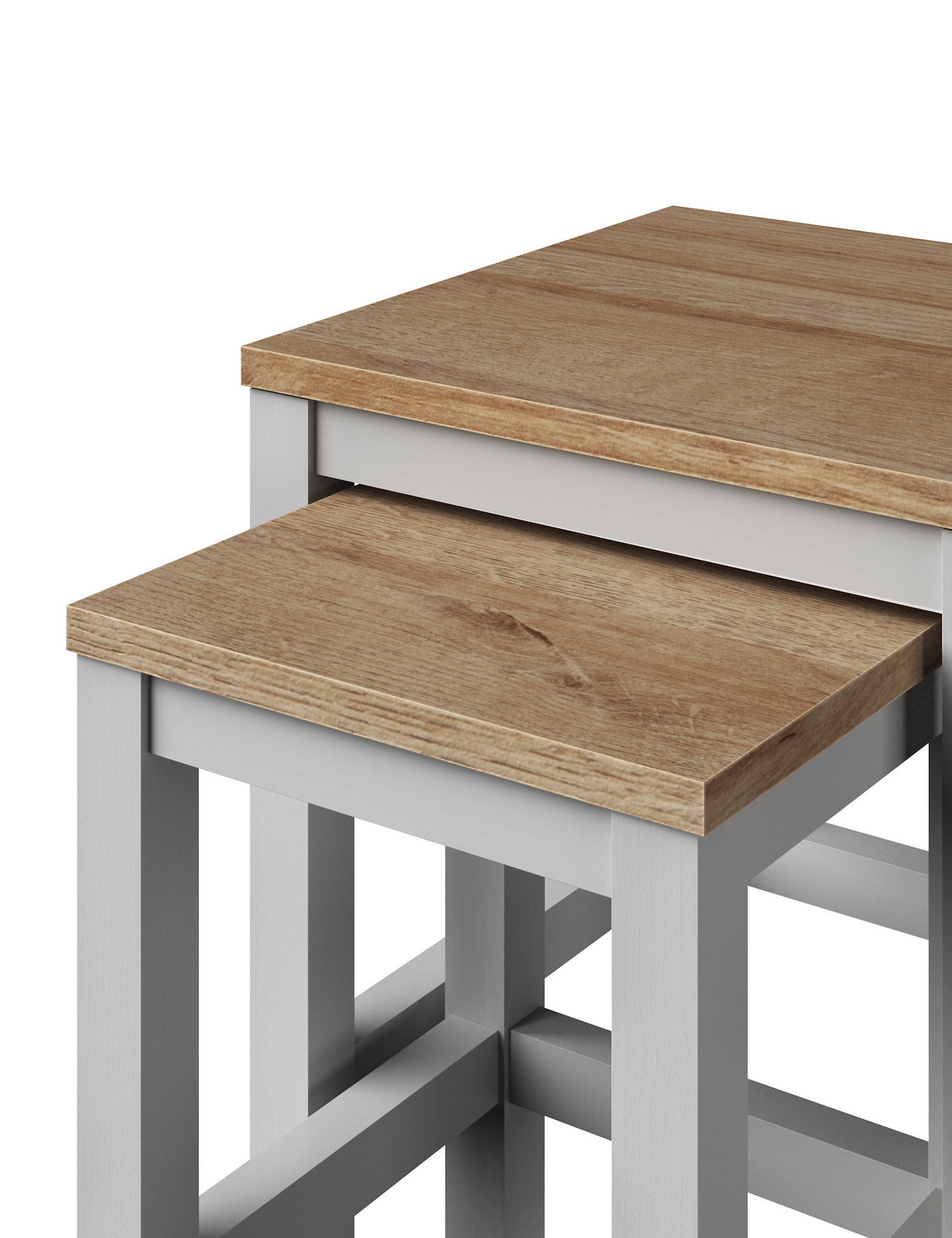 Maximise your space with this pair of modern nesting tables from our Salcombe range. They're a quick and simple solution when you need extra surfaces and can tuck neatly into one another to save on space. Choose from a range of finishes to find the perfect style for your home.